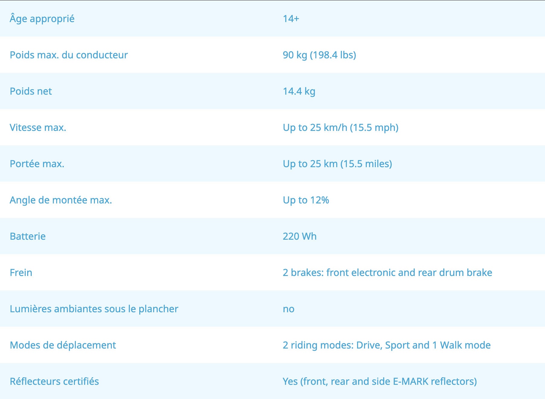 Autonomie : Portée jusqu'à environ 25 km